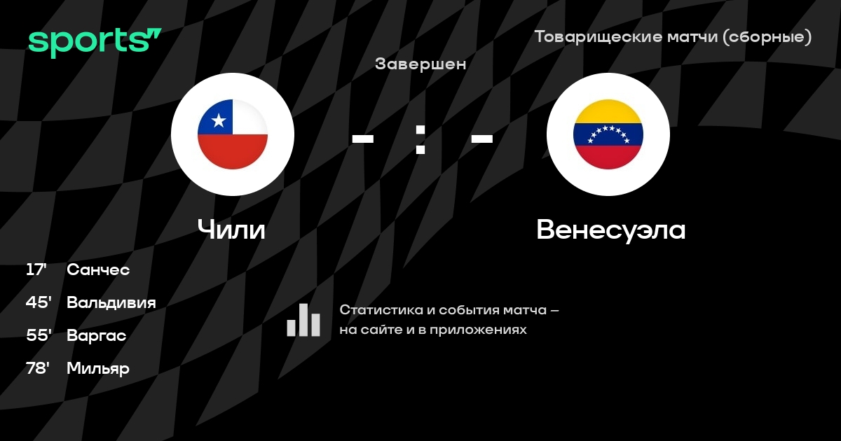 Браво - Мена, Лихновски, Медель, Исла - Диас, Вальдивия, Видаль, Арангис - Варгас, СанчесЗапасные: Санчес, Эррера, Рохас, Хара, Босежур, Кармона, Мильяр, Эрнандес, Сильва, Орельяна, Пинилья