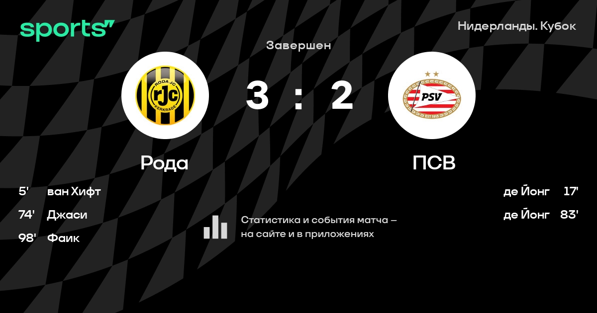 Кубок Голландии. 1/8 финала. ПСВ в гостях уступил «Роде» и другие результаты