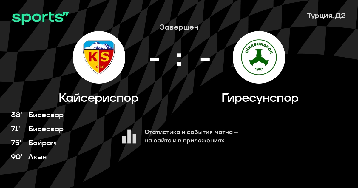 Агаев - Улудаг, Джан, Серену, Байрам, Симич - Йокушлу, Ташдемир, Дагашан, Бисесвар - НобреЗапасные: Эрдоган, Биринджи, Дегирменджиоглу, Куртулуш, Акын, Дурак, Шахин