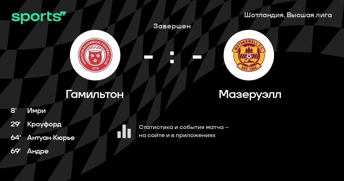Макговерн - Хендри, Девлин, Кэннинг, Гиллеспи - Маккиннон, Нил, Кроуфорд, Андре, Имри - Антуан-КюрьеЗапасные: Хилл, Гарсия Тена, Редмонд, Лонгридж, Раутледж, Брофи
