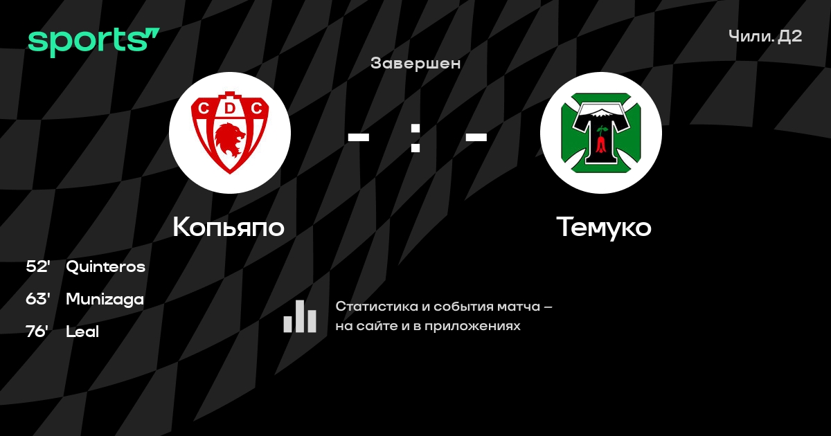 Лопес - Хиль, Riffo Villablanca, Figueroa, Melo Cornejo, Идальго - Sanhueza Medel, Гонсалес, Берьекс - Малано, Schwob LeónЗапасные: Маль, Novoa Contreras, Flores Rivera, Altamirano Acuña, Маркес, González Valdés, Salas Huincahue