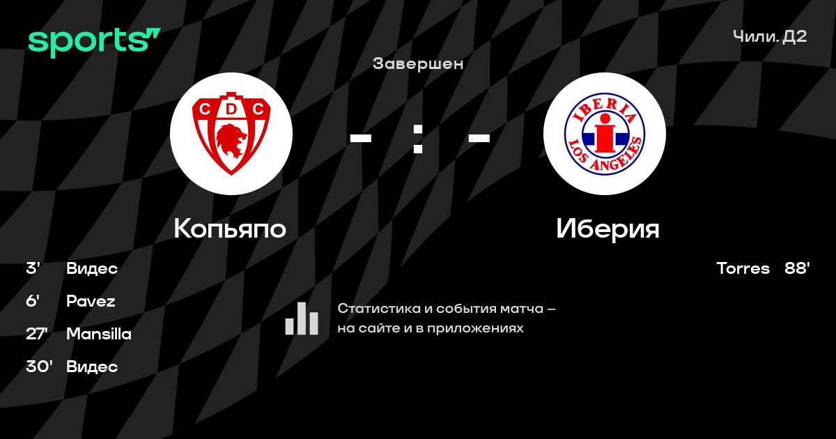 Burgos Gallardo - Vallejos Ubillo, Вильегас, Бугеньо, Portillo - Пиньонес, Munizaga Maturana, Muñoz Ardiles, Pavez, Mansilla Dorador - ВидесЗапасные: Tello Rojas, Росс, Эганья, Меливилу, Baeza Figueroa, Москера