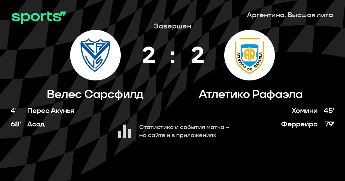 Трансляция Велес Сарсфилд - Атлетико Рафаэла