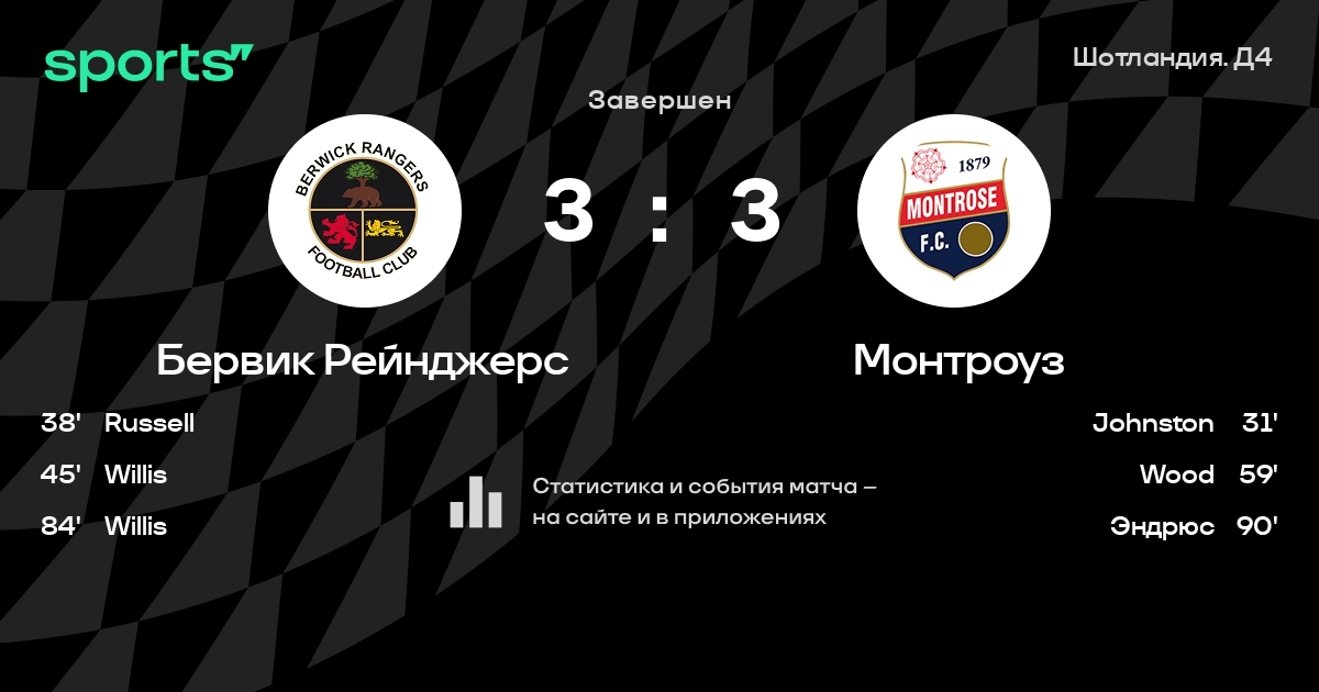 Bald - Jacobs, Young, Drummond, Fairbairn - Maxwell, Notman, Currie, Willis - Lavery, RussellЗапасные: Andrews, Tulloch, Gray, Henderson, Dargo