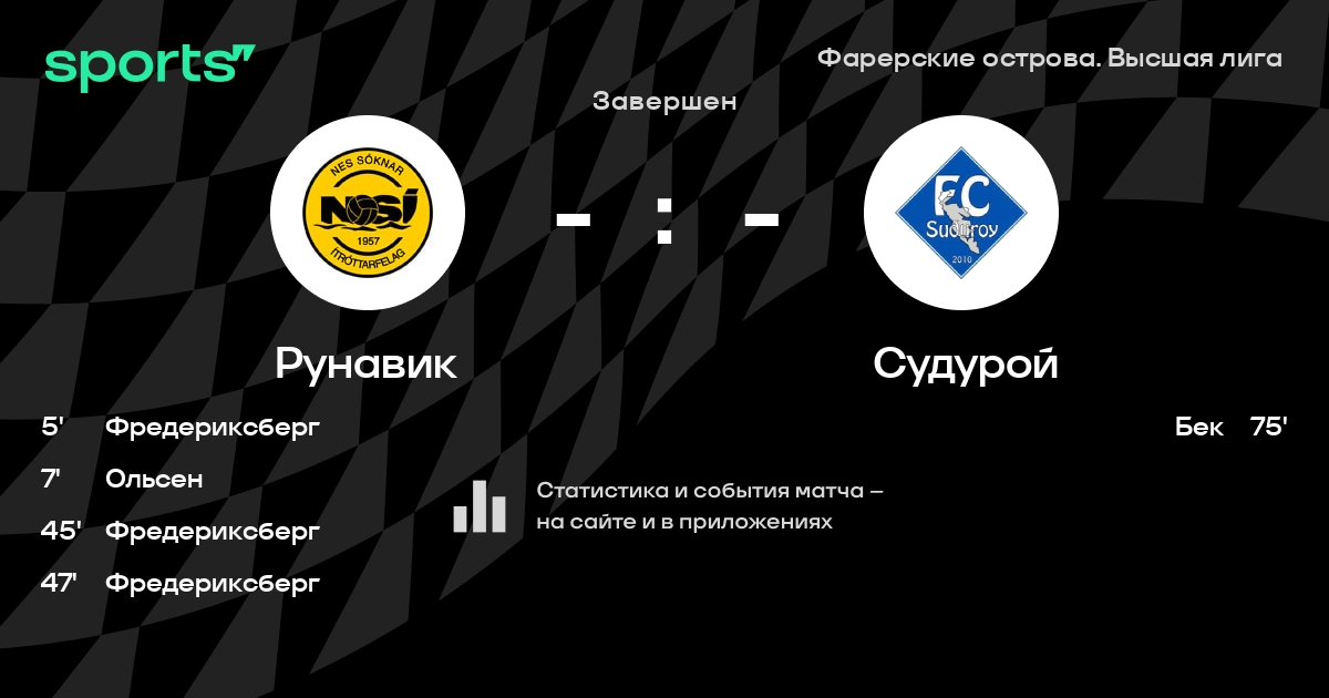 Ганго - Фредериксберг, Ланггор, Юстинуссен, Хансен, Йонсен - Мортенсен, Якобсен, Эдмундссон, Фредериксберг - ОльсенЗапасные: Хансен, Якобсен, Хейгор, Хейгор, Frederiksberg