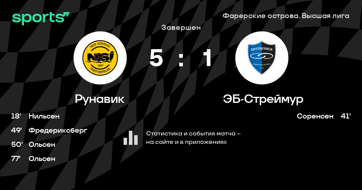 Ганго - Фредериксберг, Якобсен, Юстинуссен, Йонсен, Ланггор - Мортенсен, Якобсен, Эдмундссон, Фредериксберг - ОльсенЗапасные: Хансен, Горбо, Хейгор, Ольсен, Хейгор