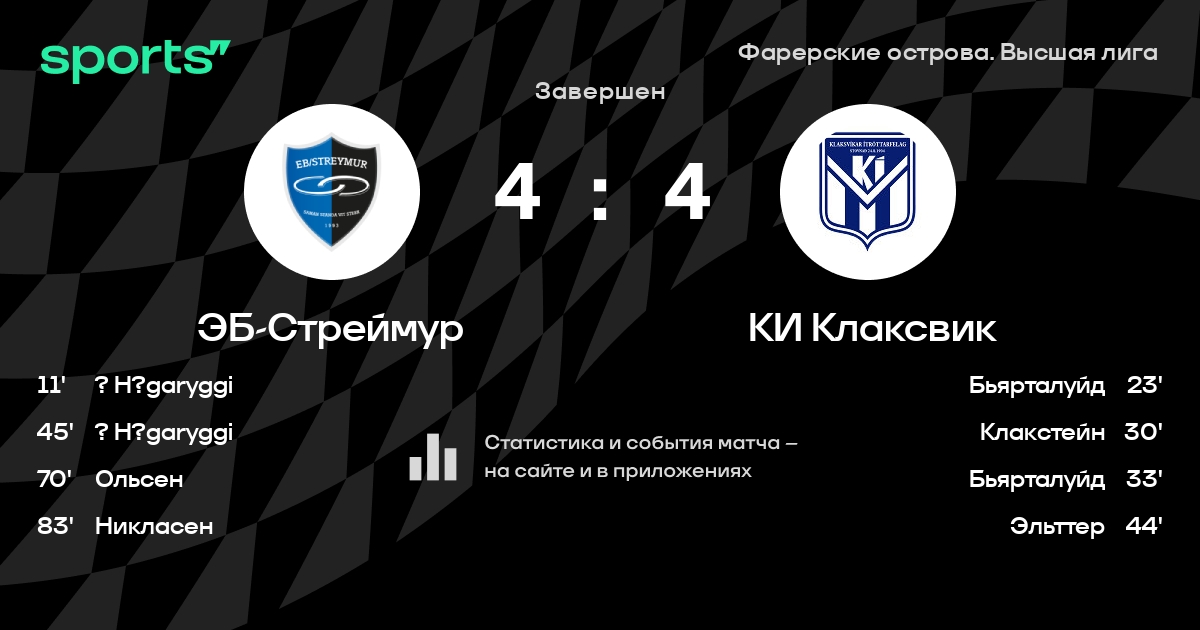 Юнсен - Kalsø, Гуйе, Расмуссен, Симонсен - Joensen, Клакстейн, Danielsen - Хайнесен, Эльттер, БьярталуйдЗапасные: Sigurdsson, Даниэльсен, Alli, Юстесен, Andreasen