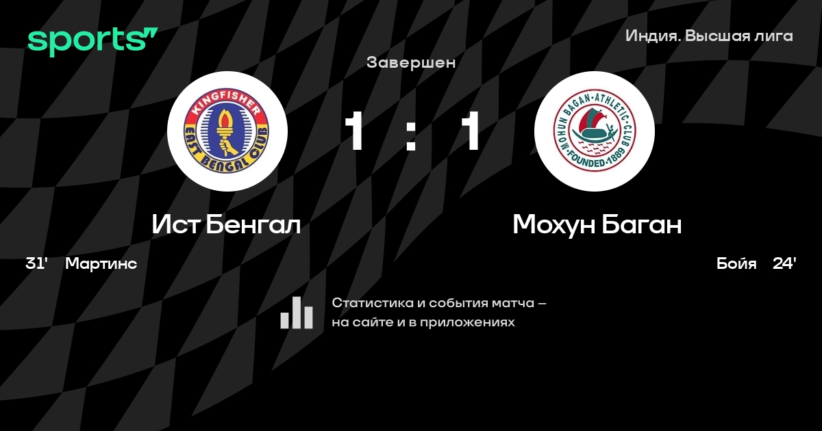| 4 | Ист Бенгал | 20 | 8 | 5 | 7 | 30 | 28 | +2 | 29 | ||