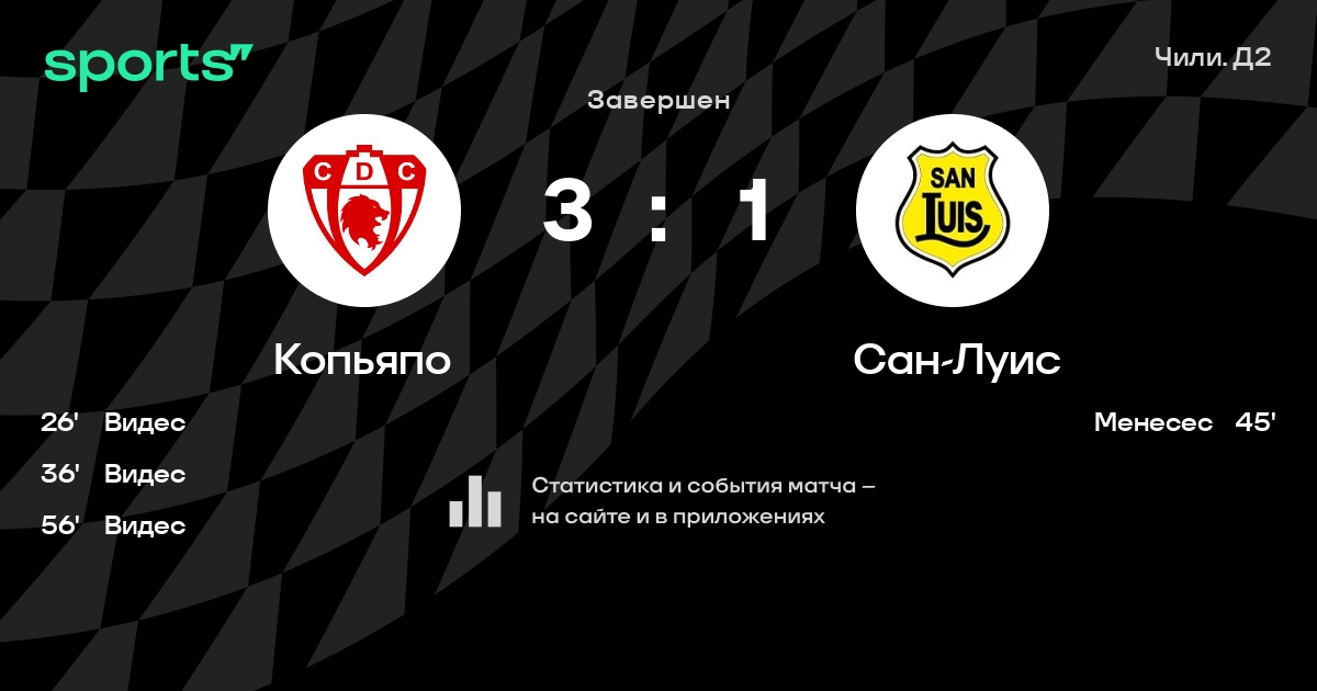 Burgos Gallardo - Muñoz Viveros, Vallejos Ubillo, Portillo - Пиньонес, Baeza Figueroa, Munizaga Maturana, Muñoz Ardiles, Меливилу, Pavez - ВидесЗапасные: Маль, Манес, Ahumada Morales, Росс, González Reyes, Mansilla Dorador, Москера