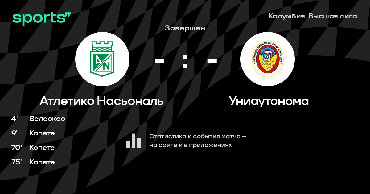 Армани - Нахера, Мурильо, Диас - Мехия, Арьяс, Перес - Копете, Киньонес, Беррио, ВеласкесЗапасные: Варгас, Москера, Герра, Эскобар, Руис