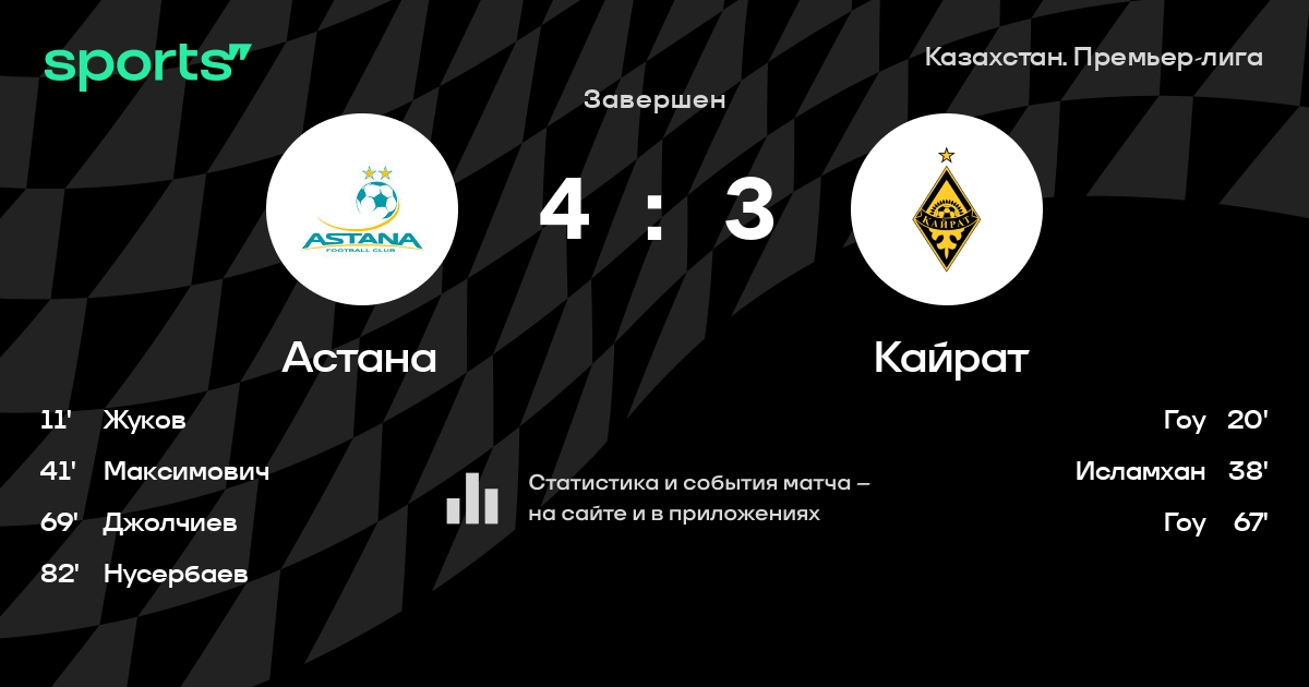 Плотников - Куантаев, Рудосельский, Маркович, Плиев - Риера, Бакаев, Гурман, Исламхан - Изаэл, ГоуЗапасные: Ткачук, Лунин, Нурмугамет, Дарабаев, Куат, Сержиньо, Ли