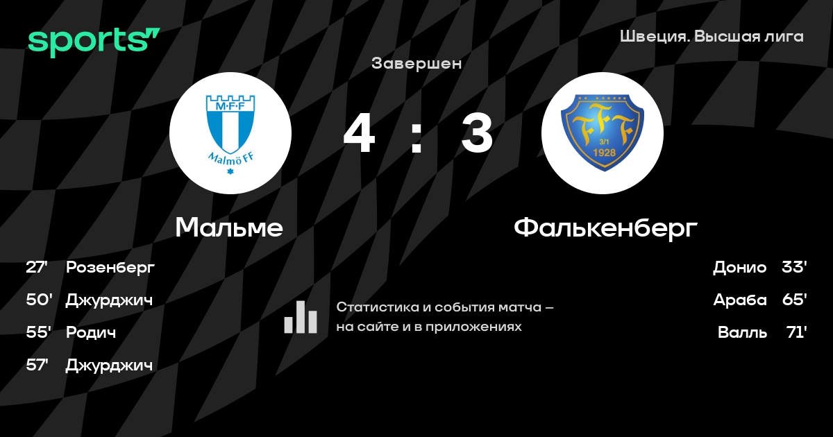 Виланд - Арнасон, Брурссон, Тиннерхольм - Левицки, Йотун, Эйкрем, Аду - Джурджич, Бергет, РозенбергЗапасные: Андерссон, Карвальо, Конате, Родич, Сана, Ракип, Чибицки