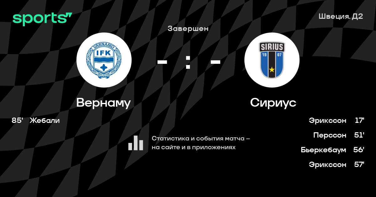 Андерссон - Nystrom, Перссон, Андерссон - Марипу, Сарфо, Густафссон, Эрикссон, Скоглунд - Бьеркебаум, ОгбуЗапасные: Юнссон, Сирелиус, Сильва, Lundback
