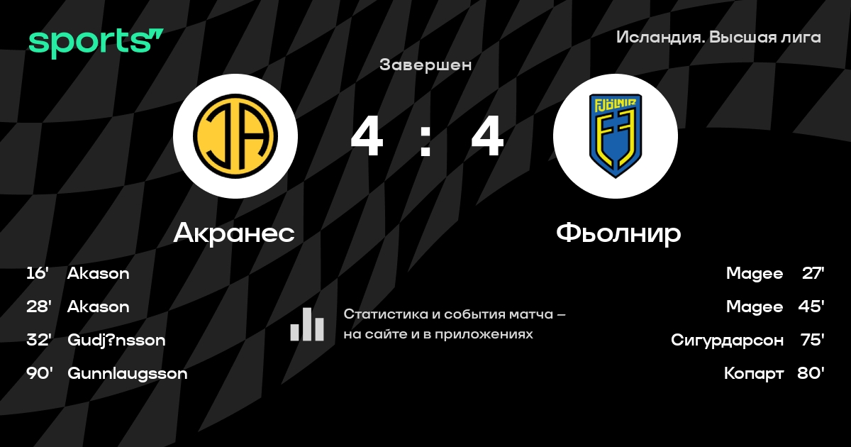 Ингасон - Копарт, Оулавссон, Олафссон, Neftalí Díez González, Gudjónsson - Гудмундссон, Йонссон, Леоссон - Magee, СигурдарсонЗапасные: Gunnarsson, Thorbergsson, Ársælsson, Ингасон, Gudmundsson, Gunnarsson