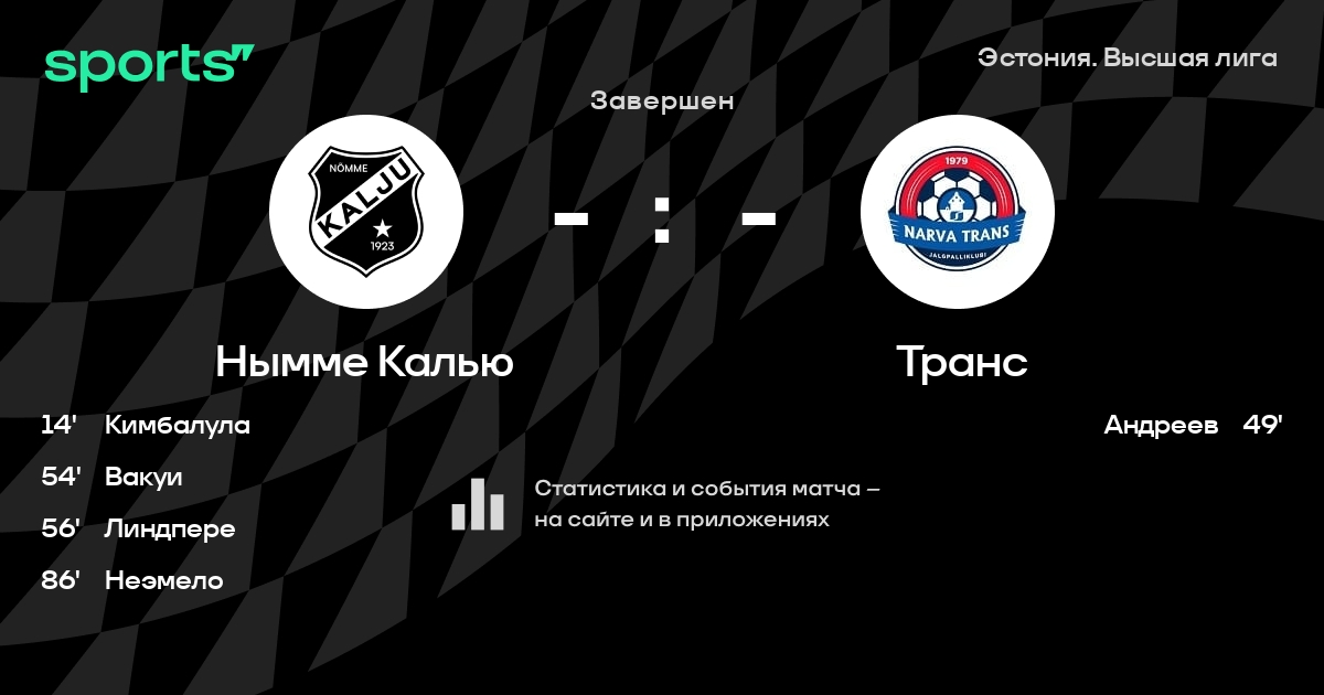 Телеш - Калласте, Родригеш, Бяренгруб - Дмитриев, Вакуи, Кимбалула, Линдпере, Меел, Mbu Alidor, Листманн - Запасные: , Galpin, Мяги, Пури, Junolainen, Неэмело, Ярва