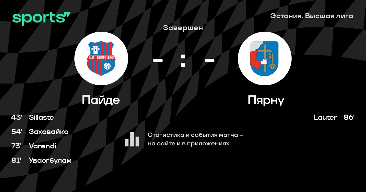 Niinepuu - Пейтре, Лиландер, Lomp, Varendi, Паюнурм - Устаал, Синилайд - Уваэгбулам, Заховайко, SillasteЗапасные: , Tomson, Kukk, Паур, Adusoo, Rõivassepp