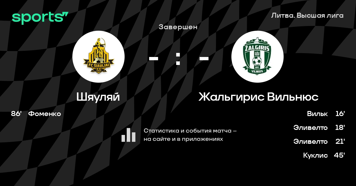 Трансляция Шяуляй - Жальгирис Вильнюс