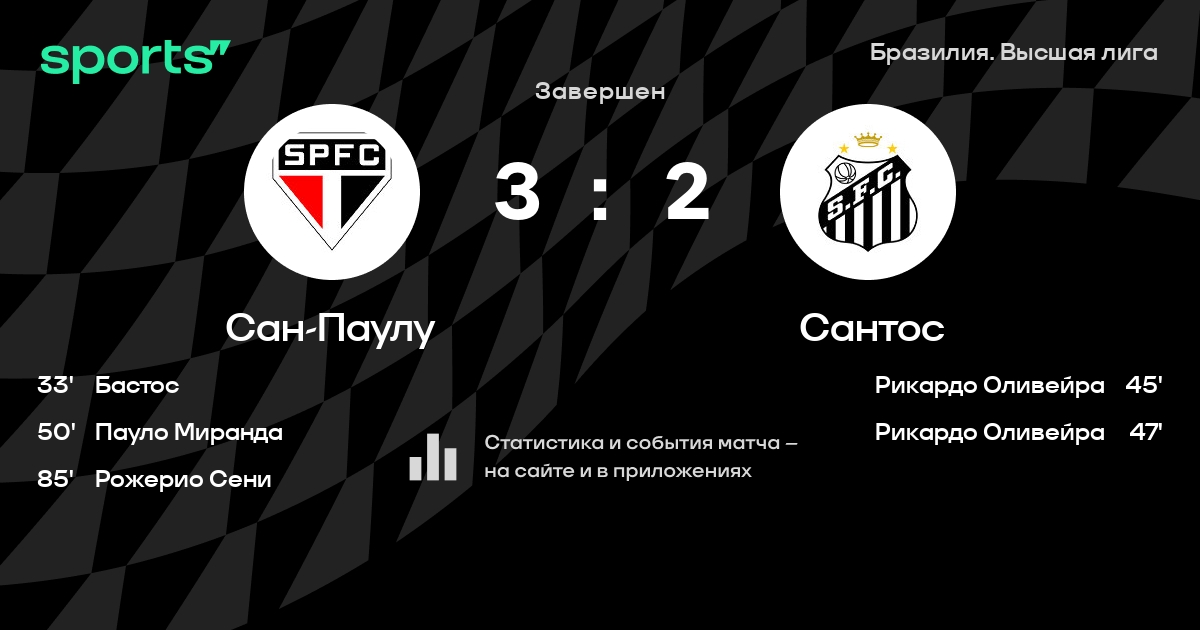 Владимир - Ферраз, Браз, Верлей, Даниэл - Ренато, Лукас Отавио, Рафаэл Лонгине, Лукас Лима, Жеуванио - Рикардо ОливейраЗапасные: Вандерлей, Густаво Энрике, Маркиньос Габриэл, Лукас Криспин, Леандриньо, Тиаго Майя, Шикиньо, Маркиньос, Габриэл Барбоза