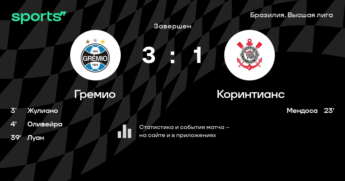 Кассио - Фабио Сантос, Жил, Эду Драсена, Фагнер - Барони, Бруно Энрике, Мендоса, Ренато Аугусто, Жадсон - РомероЗапасные: Видотто, Валтер, Фелипе, Эдилсон, Уэндел, Марсиэл, Ральф, Петрос, Вагнер Лав