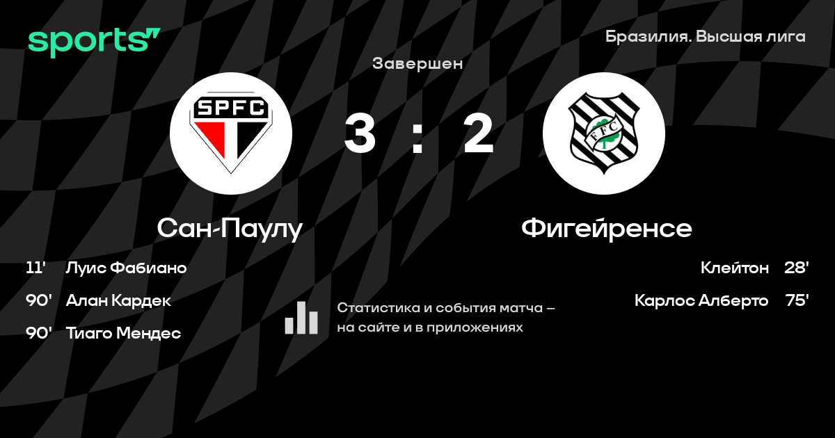 Денис - Карлиньос, Лукао, Родриго Кайо, Бруно Виейра - Тиаго Мендес, Хадсон, Пато, Гансо, Бастос - Луис ФабианоЗапасные: Рибейро, Эдсон Силва, Рейналдо, Ауро, Войнович, Матеус Рейс, Шмидт, Даниэл, Гисао, Уэсли, Сентурион, Алан Кардек