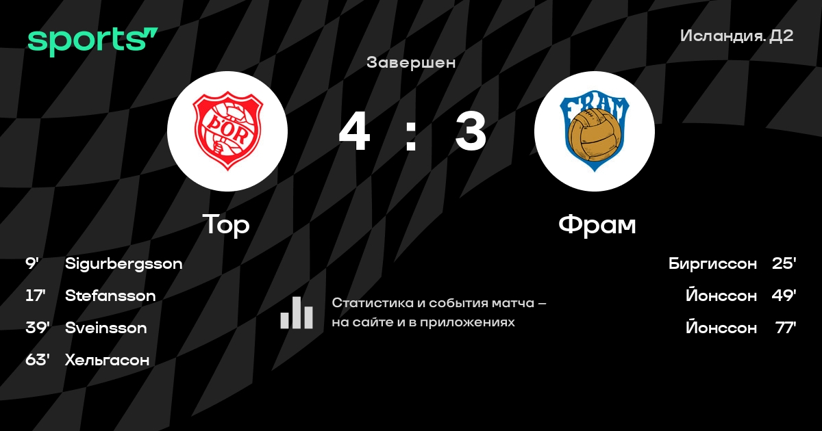Matus - Хельгасон - Stefansson, Sveinsson, Sigurbergsson, Эварссон, Tóth, Sigurjonsson - Jonsson, Хьялтасон, BjörnssonЗапасные: Stefansson, Bjarnason, Logason, Arnason, Steingrímsson, Rósbergsson, Malmquist Gíslason