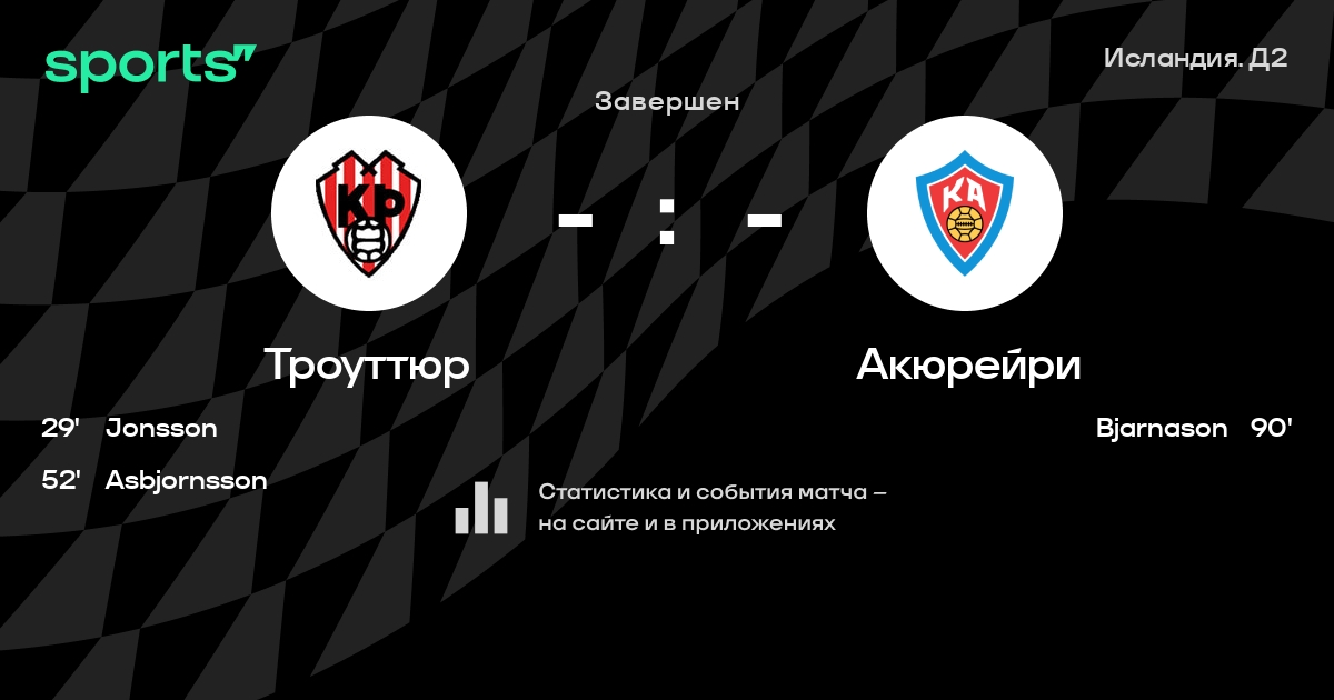 | 3 | Акюрейри | 22 | 12 | 5 | 5 | 42 | 22 | +20 | 41 | ||