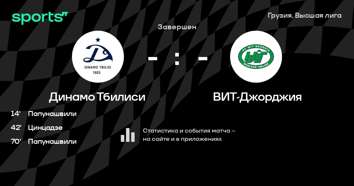 | 3 | Динамо Тбилиси | 30 | 17 | 7 | 6 | 56 | 28 | +28 | 58 | ||