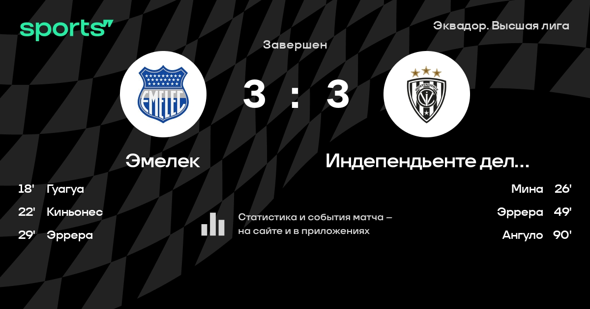 Дреер - Киньонес, Нарваэс, Багуи, Гуагуа - Хименес, Rodríguez Fontecilla, Ластра, Киньонес - Эррера, МондаиниЗапасные: , Леон, Мина, Бурбано, Фернандес, де ла Крус, Эскалада