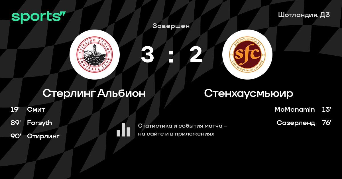 Стерлинг Альбион - Стенхаусмьюир: составы на матч