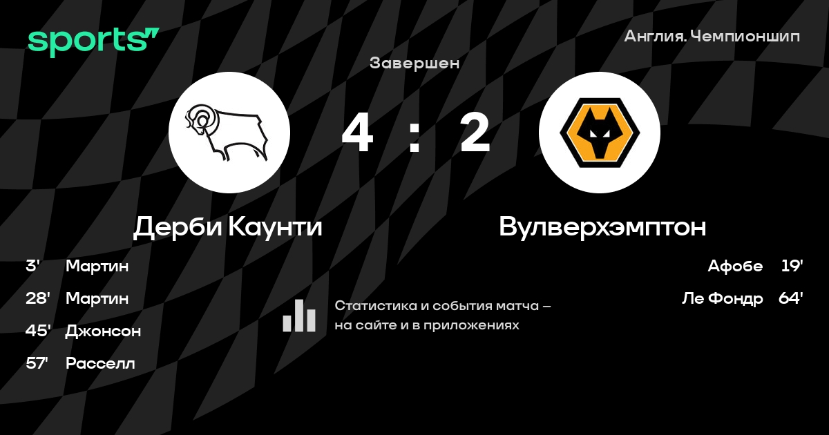 Чемпионшип. 11-й тур. «Дерби Каунти» победил «Вулверхэмптон» и другие результаты