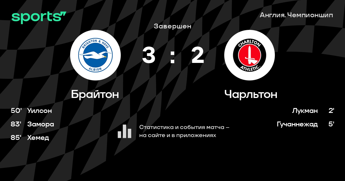 Чемпионшип. 17-й тур. «Брайтон» в гостях сыграл вничью с «Бернли» и другие результаты
