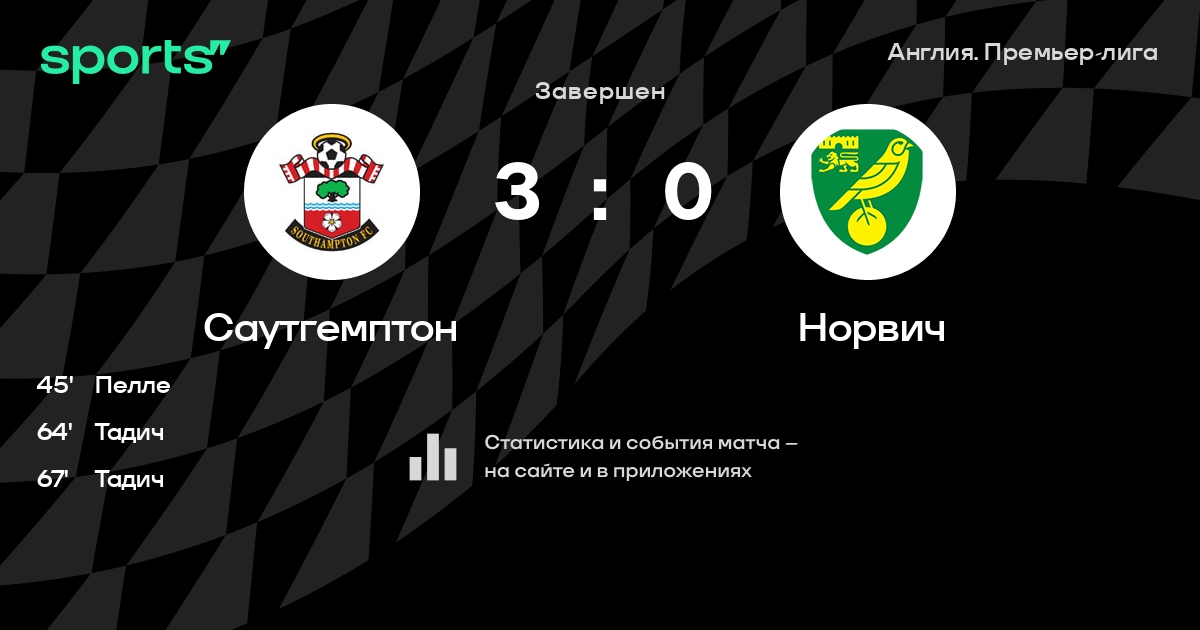 | 6 | Саутгемптон | 38 | 18 | 9 | 11 | 59 | 41 | +18 | 63 | ||