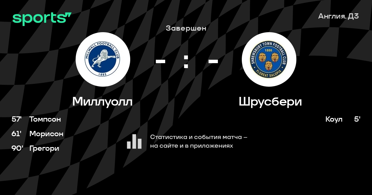 Трансляция Миллуолл - Шрусбери