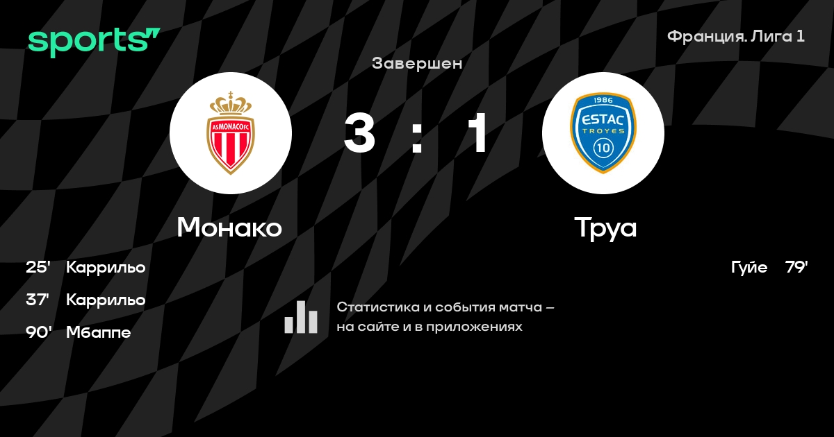 Субашич - Элдерсон, Карвалью, Уоллес, Раджи - Элдер Кошта, Бакайоко, Тулалан, Лемар - Каррильо, Вагнер ЛавЗапасные: Нарди, Туре, Жемерсон, Балули, Пашалич, Траоре, Мбаппе