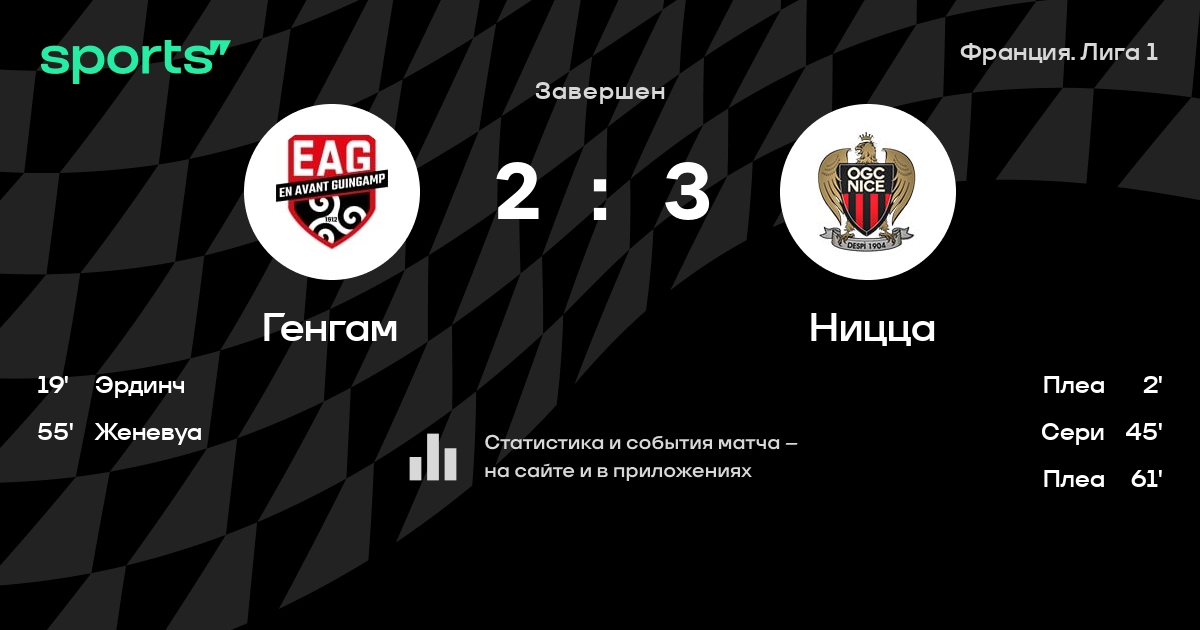| 16 | Генгам | 38 | 11 | 11 | 16 | 47 | 56 | -9 | 44 | ||