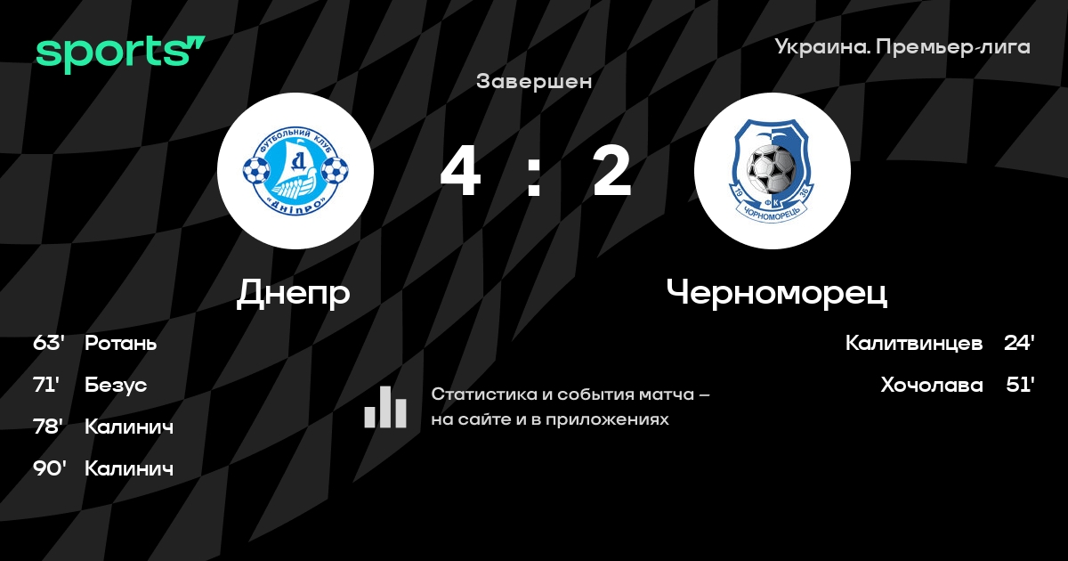 Трансляция Днепр - Черноморец Одесса