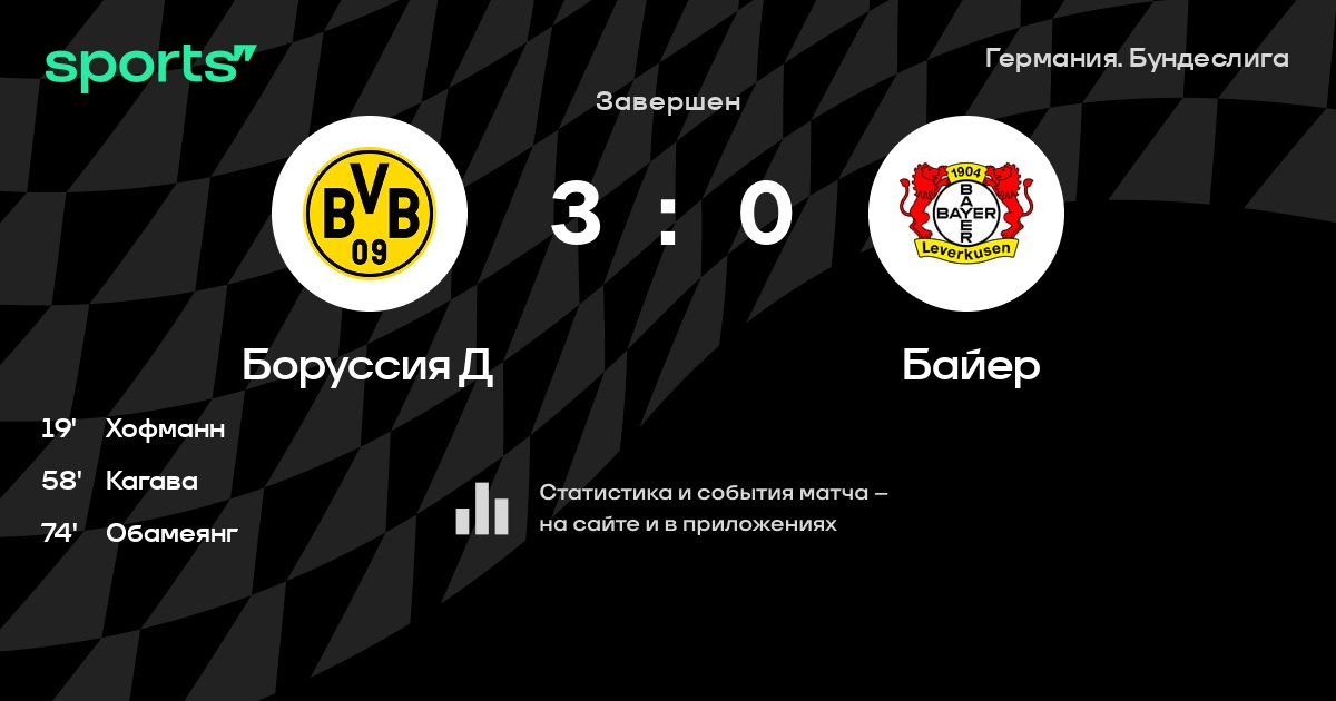 Бюрки - Шмельцер, Хуммельс, Папастатопулос, Гинтер - Вайгль, Гюндоган, Мхитарян, Кагава, Хофманн - ОбамеянгЗапасные: Вайденфеллер, Пак Чжу Хо, Пишчек, Кастро, Янузай, Ройс, Рамос