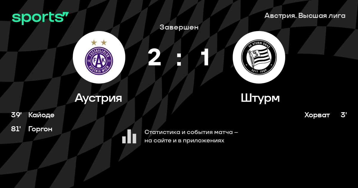 Хаджикич - Марчинко, Ротпуллер, Шиков, Кох - Хольцхаузер, Грюнвальд, Цулехнер, Кахат, Горгон - КайодеЗапасные: Пентц, Виндбихлер, Зербест, Заламон, Вукоевич, Майлингер, Фризенбихлер