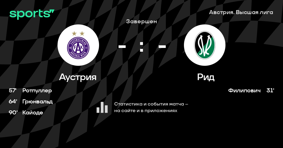 Хаджикич - Марчинко, Ротпуллер, Шиков, Кох - Грюнвальд, Вукоевич, Майлингер, Горгон, Де Паула - ФризенбихлерЗапасные: Пентц, Виндбихлер, Ларсен, Прокоп, Квасина, Лукас Венуто, Кайоде