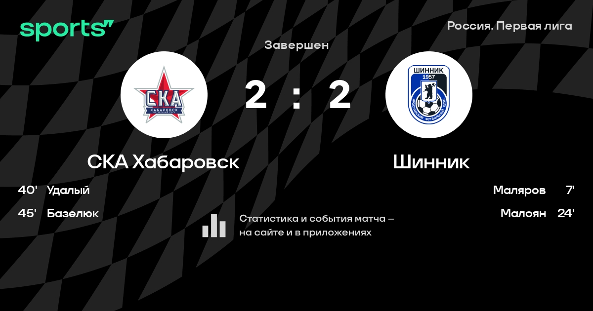 СКА Хабаровск – Шинник: коэффициенты