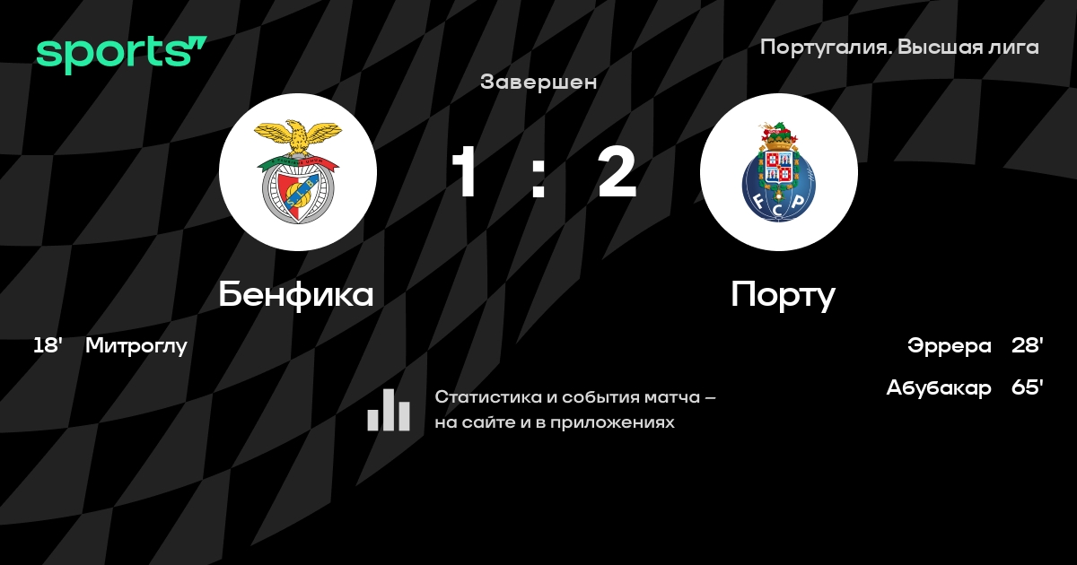Чемпионат Португалии. «Бенфика» уступила «Порту»