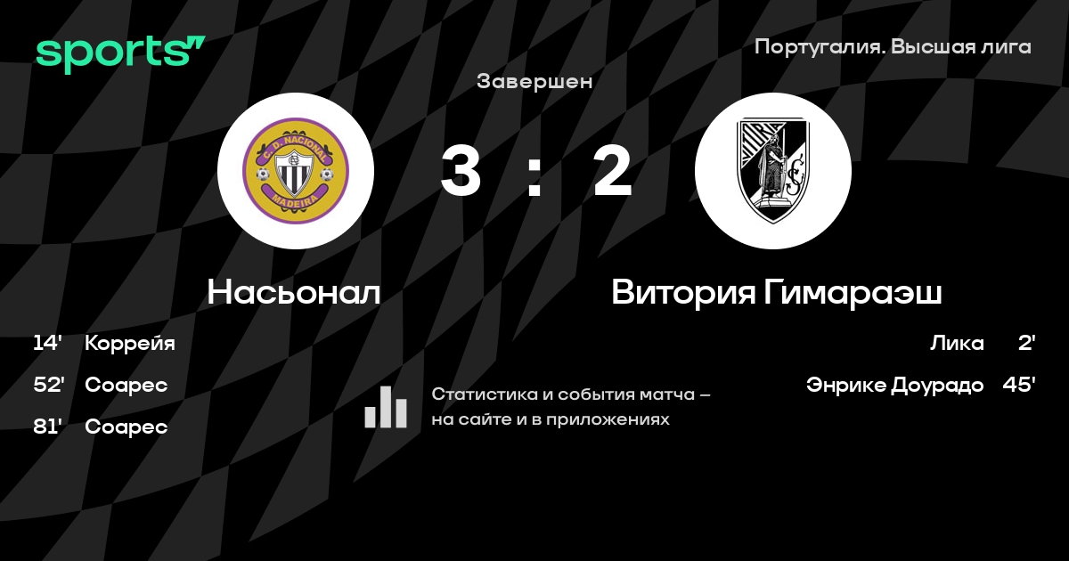Мигел Силва - Педро Энрике, Бруну Гашпар, Далберт, Жозуэ Са - Кафу, Росель, Уртадо - Виктор Андраде, Энрике Доурадо, ЛикаЗапасные: , Аррондель, Тозе, Саре, Шанде Силва, Валенте