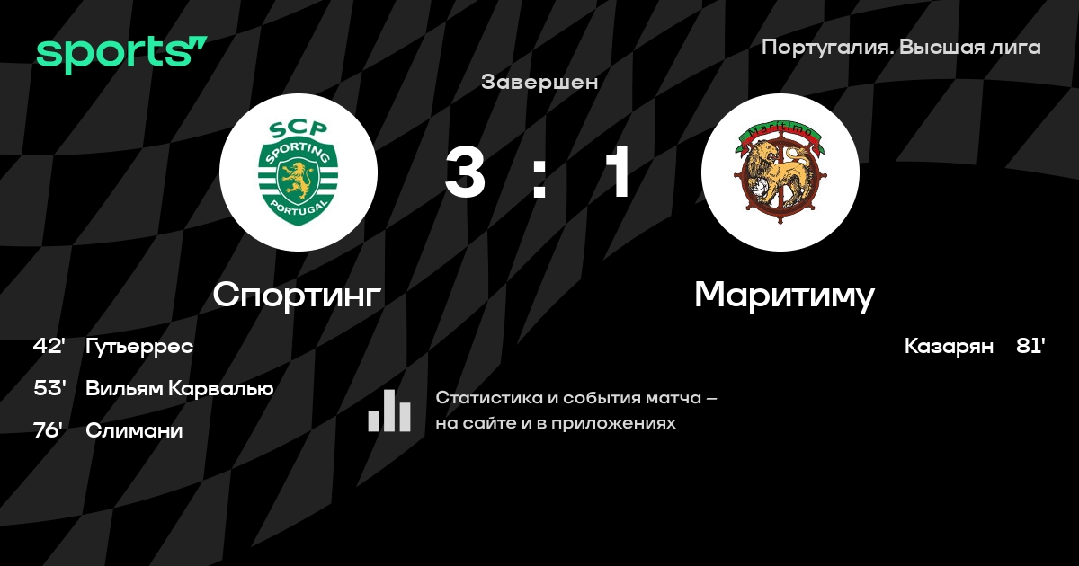 Руй Патрисиу - Коатес, Скелотто, Рубен Семеду - Жоау Мариу, Бруно Сезар, Аквилани, Вильям Карвалью - Руис, Гутьеррес, СлиманиЗапасные: Юг, Зегелар, Тобиаш Фигейреду, Эшгайю, Матеус Перейра, Желсон Мартинш, Баркос