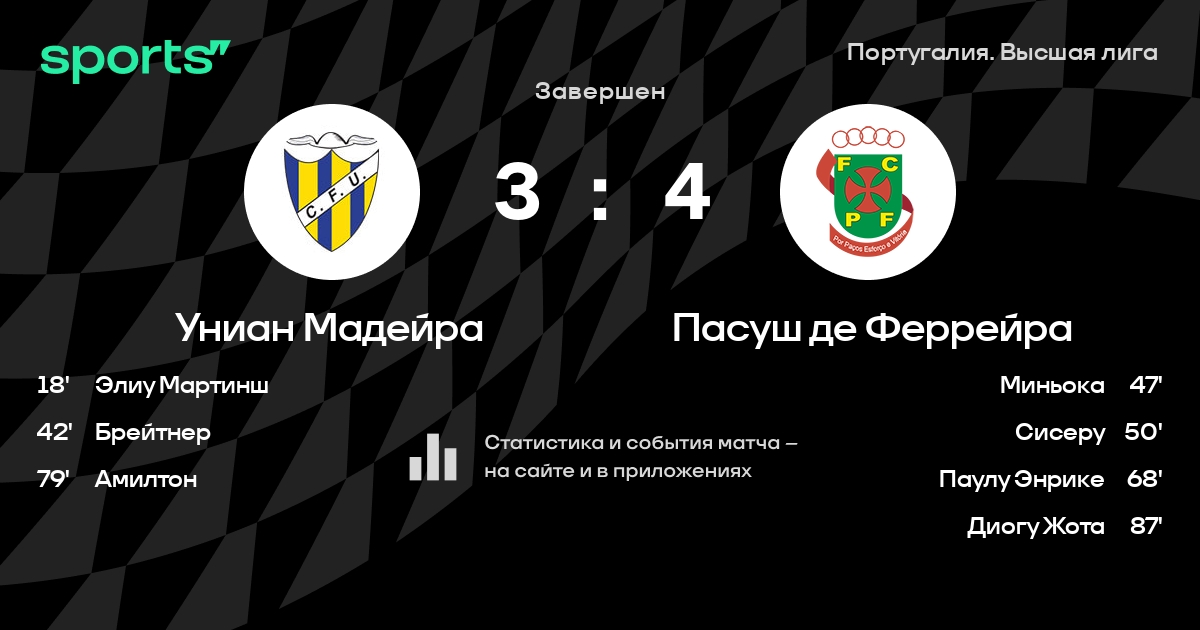 Униан Мадейра – Пасуш де Феррейра: коэффициенты