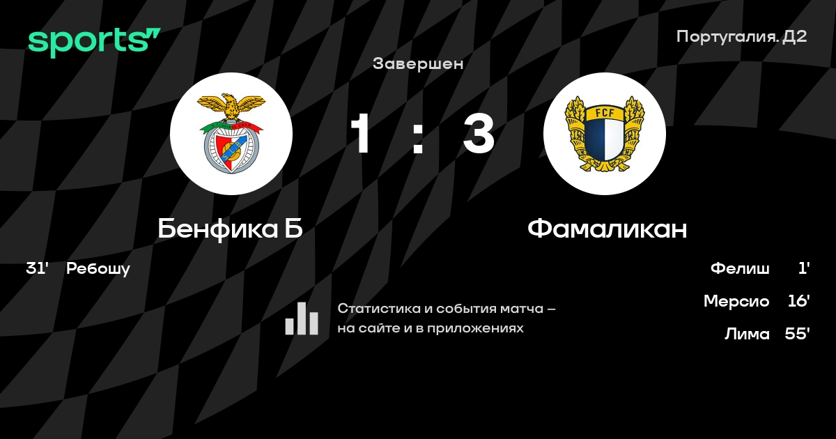 Андре Феррейра - Алешандре Алфаяте, Ребошу, Давидович, Рубен Диаш - Шаркич, Диогу Гонсалвеш, Жоау Карвалью, Таарабт - Илдеберту, Сансидину СилваЗапасные: Граса, Юри Рибейру, Жоау Лима, Пепе Родригеш, Кошта, Феррейра, Вера