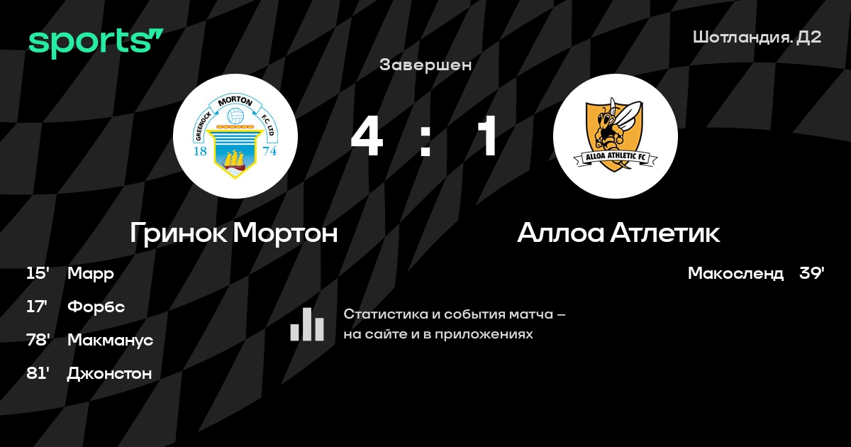 Трансляция Гринок Мортон - Аллоа Атлетик