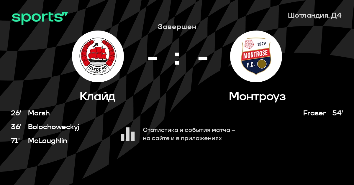 Salmon - Pascazio, Howlett-Mundle, Харвуд - Webster, Ferguson, Malin, Каррен, Mallagaray - Johnston, FraserЗапасные: Wood, Reoch, Hester, Reid, McLeod, Campbell, Milne