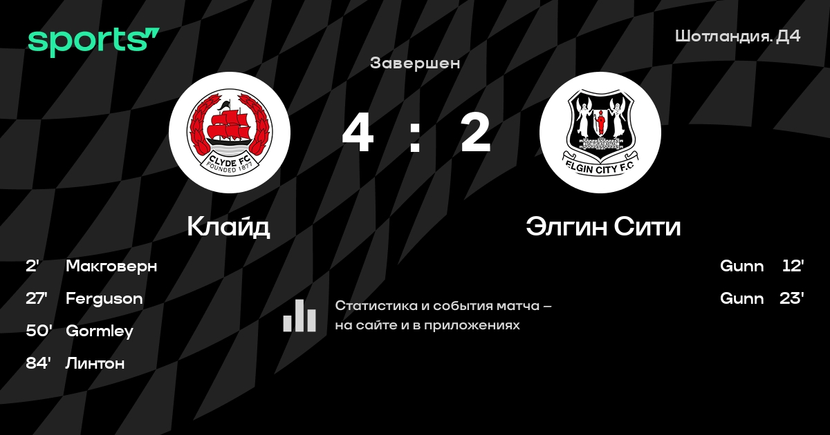 Херст - Гордон, McHardy, Cooper, Macphee - Райлли, Макларен, Moore, Cameron, Истон - GunnЗапасные: Black, Холсмен, Nicolson, McLean, Bruce, Маклауд