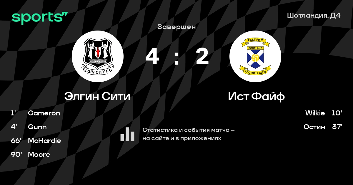 Goodfellow - Нэйсмит, Маллен, Мерсер, Макдоналд, Пейдж, Керр - O'Kane, Wilkie, Мюррей - ОстинЗапасные: Макговерн, Walker, Smith, Лейден