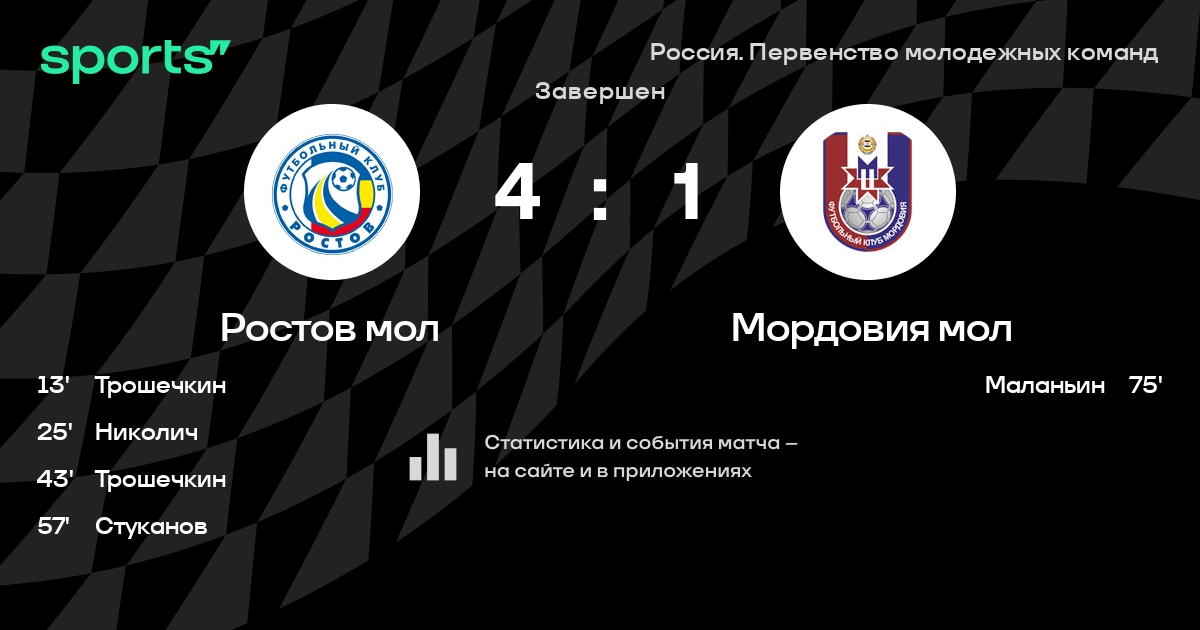 Первенство молодежных команд. 12-й тур. «Ростов» разгромил «Мордовию» и другие результаты